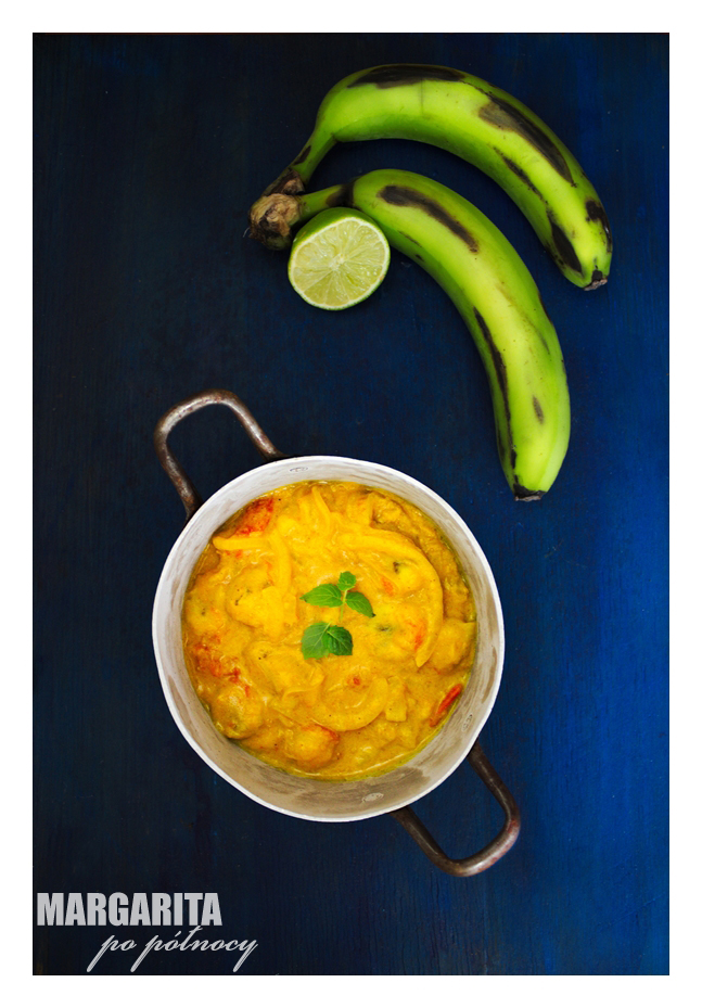 W przypadku nieposiadania zielonych bananów (idealnych do obróbki termicznej) autor proponuje, by zastąpić je dynią bądź bakłażanem. Ja jednak wypróbowałabym ten przepis nawet z tymi najczęściej dostępnymi w naszym kraju – połączenie charakterystycznej słodyczy z czymś pikantnym jest zbyt kuszące 🙂